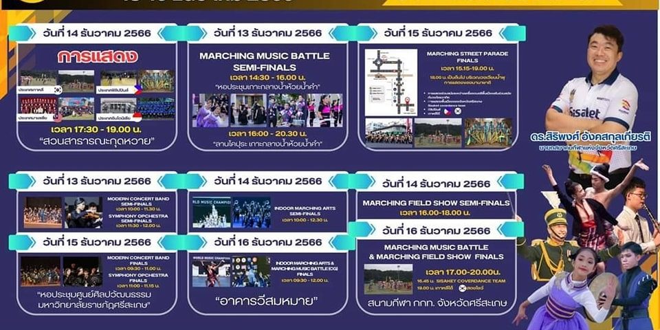 ขอเชิญร่วมชมและเชียร์ การประกวดวงโยธวาทิต ชิงถ้วยพระราชทานฯ แห่งประเทศไทย ประจำปี 2566 TWMC 2023 ระหว่างวันที่ 13-16 ธันวาคม ณ จังหวัดศรีสะเกษ