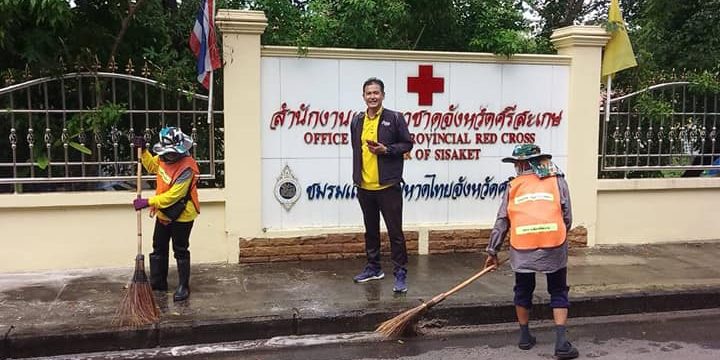 เจ้าหน้าที่งานรักษาความสะอาดเทศบาลเมืองศรีสะเกษได้รับมอบหมายจากท่านดร.ฉัฐมงคล อังคสกุลเกียรตินายกเทศมนตรีเทศบาลเมืองศรีสะเกษให้ดำเนินการล้างทำความสะอาดเอาตะไคร่น้ำออกหน้าจวนผู้ว่า