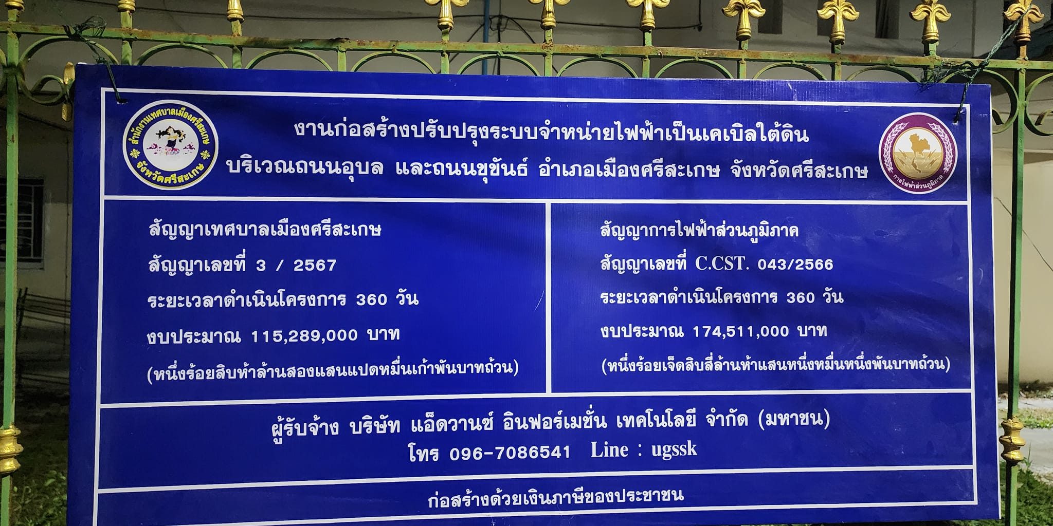 ปิดถนนอุบล ช่วงสี่แยกโรงพยาบาลศรีสะเกษ – สี่แยกศรีไทยไวน์ เวลา 20.00 น. – 05.00 น. ระยะเวลา 3-5 วัน