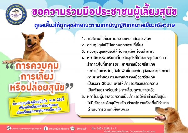 เทศบาลเมืองศรีสะเกษ ขอความร่วมมือ ประชาชนผู้เลี้ยงสุนัข…