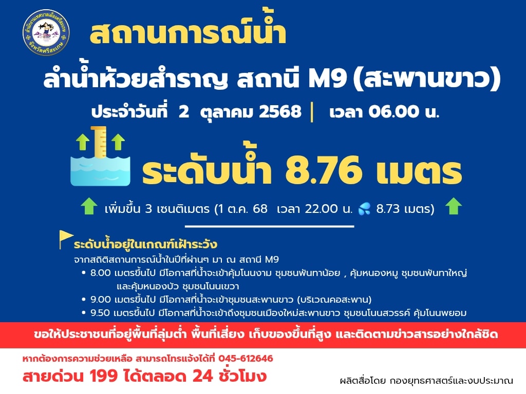 ปริมาณน้ำ วันที่ 2 ตุลาคม 2568 เวลา 12.00 น.