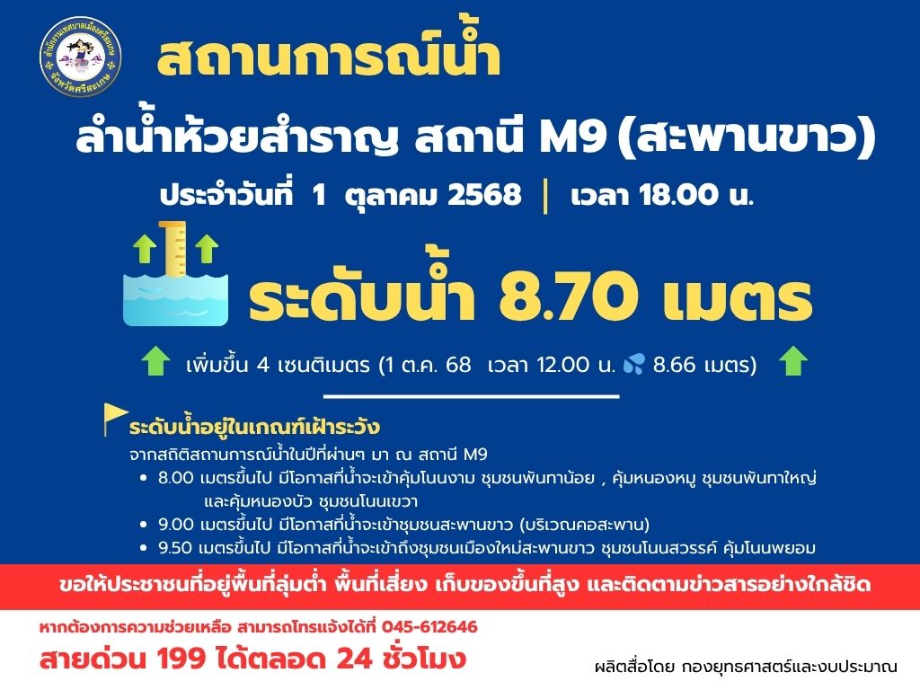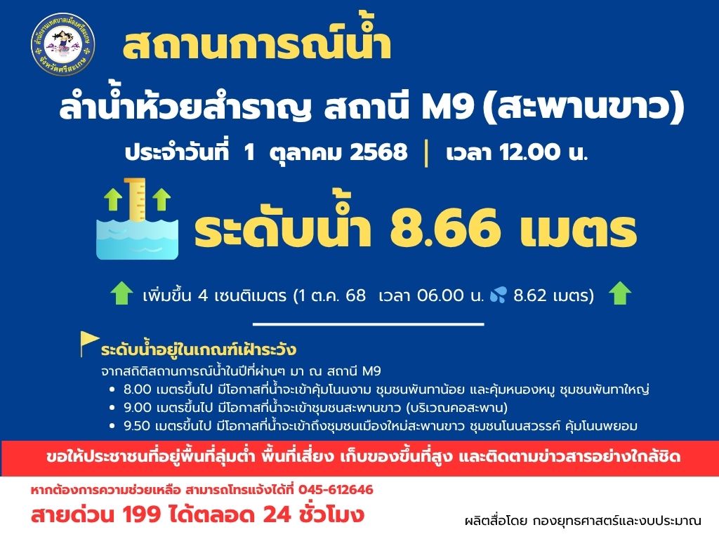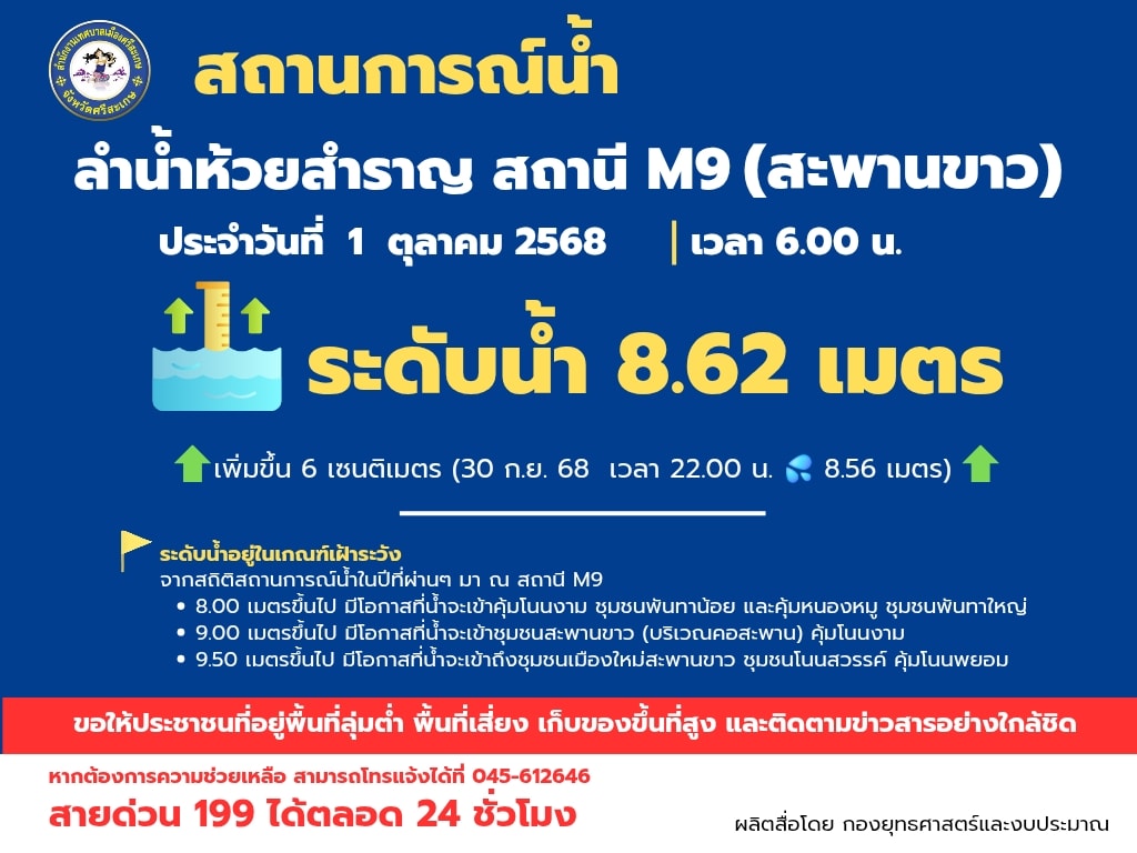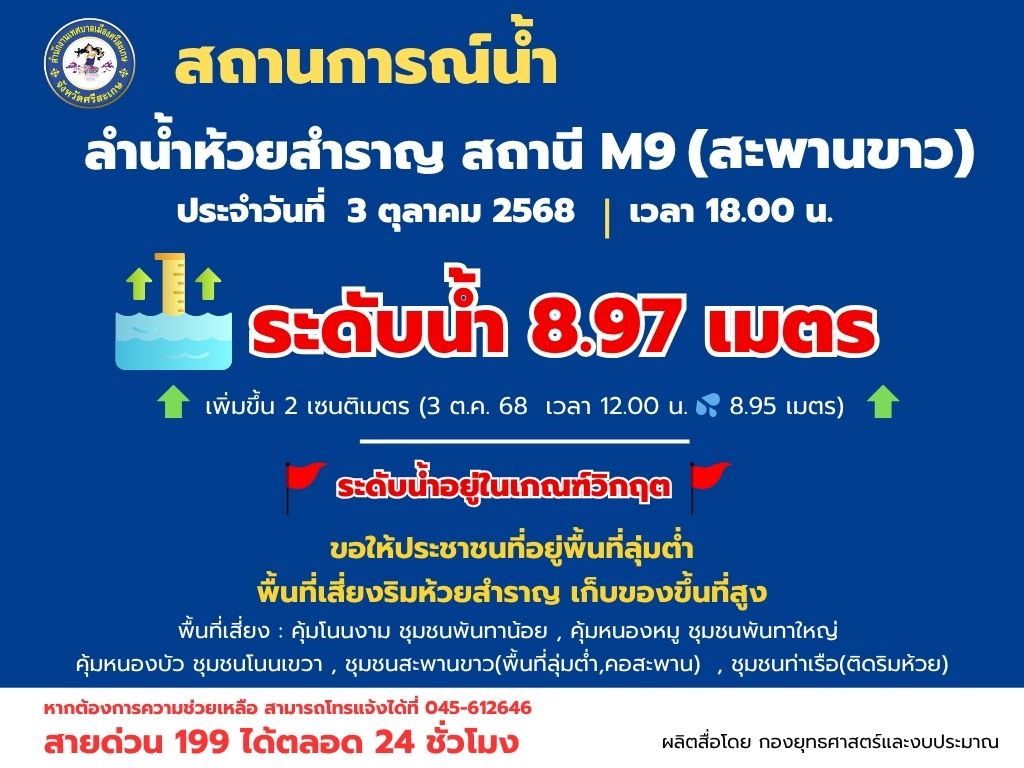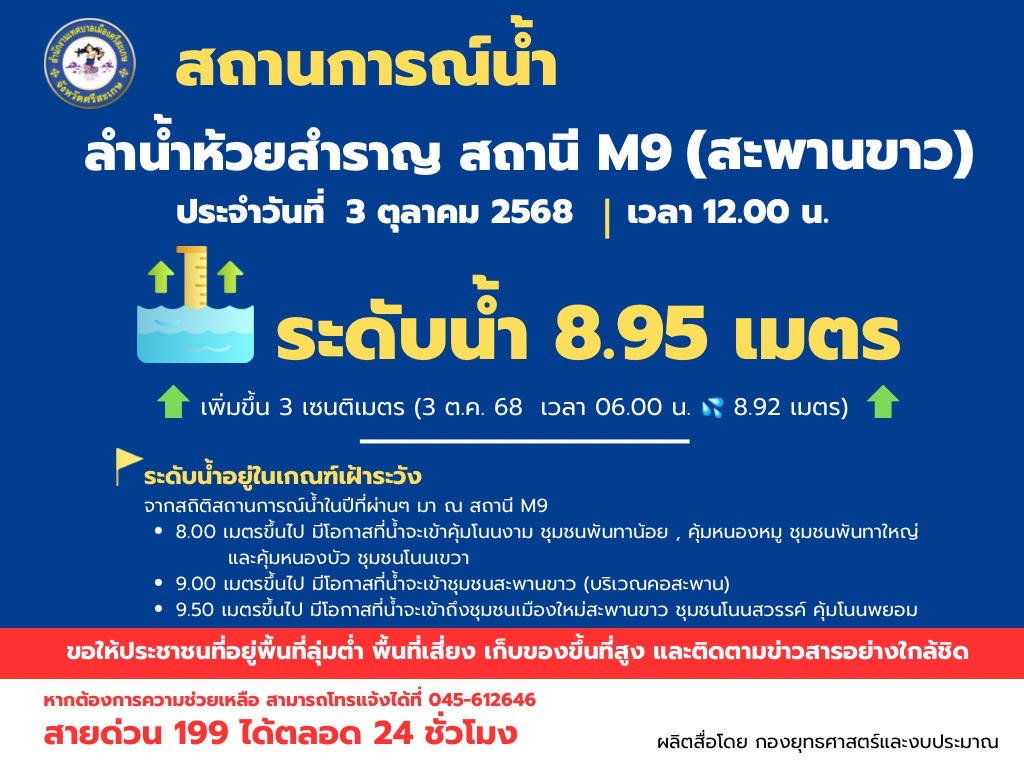 ปริมาณน้ำ วันที่ 3 ตุลาคม 2568 เวลา 12.00 น.