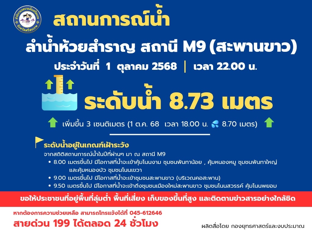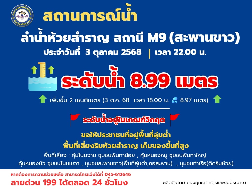 ปริมาณน้ำ วันที่ 3 ตุลาคม 2568 เวลา 22.00 น.