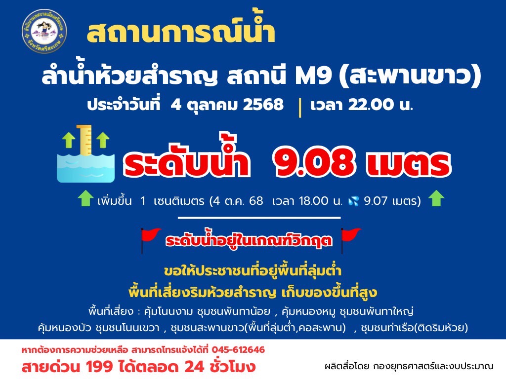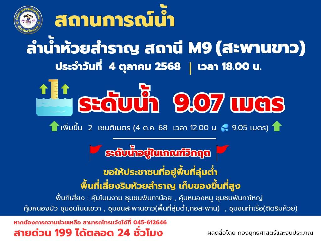 ปริมาณน้ำ วันที่ 4 ตุลาคม 2568 เวลา 12.00 น.