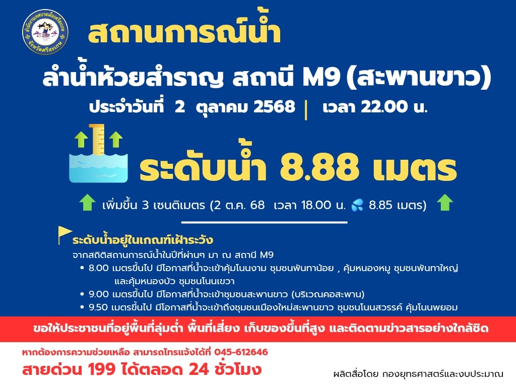 ปริมาณน้ำ วันที่ 2 ตุลาคม 2568 เวลา 22.00 น.