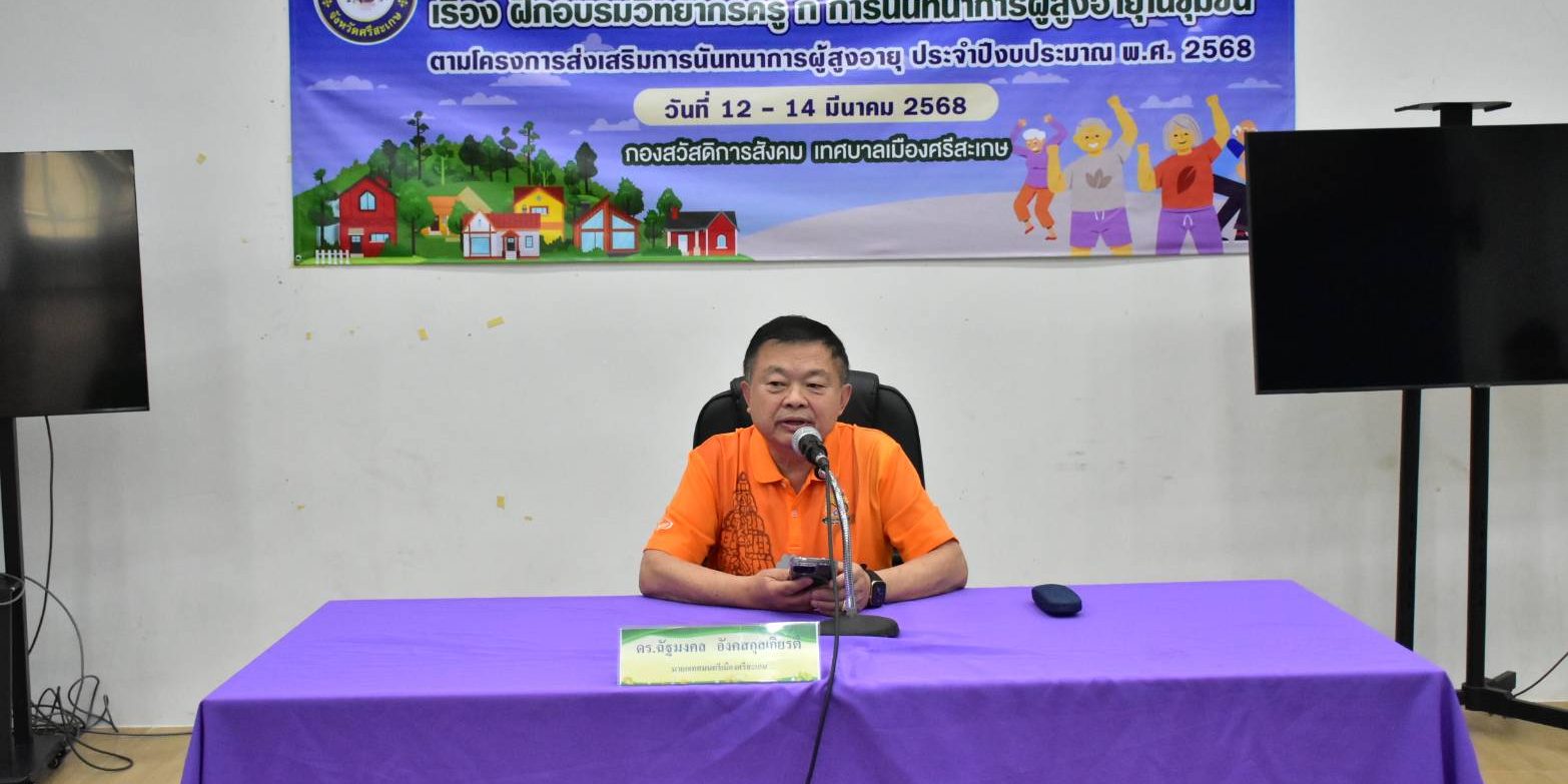 เมื่อวันที่ 12 มีนาคม 2568 เวลา 09.30 น. ดร.ฉัฐมงคล อังคสกุลเกียรติ นายกเทศมนตรีเมืองศรีสะเกษ เป็นประธาน เปิดกิจกรรมฝึกอบรมส่งเสริมสุขภาพและนันทนาการ ผู้สูงอายุในชุมชน เรื่อง ฝึกอบรมวิทยากรครู ก การนันทนาการผู้สูงอายุในชุมชน ประจำปีงบประมาณ 2568 ณ ห้องประชุมพิรุณ อาคารงานป้องกันและบรรเทาสาธารณภัย เทศบาลเมืองศรีสะเกษ