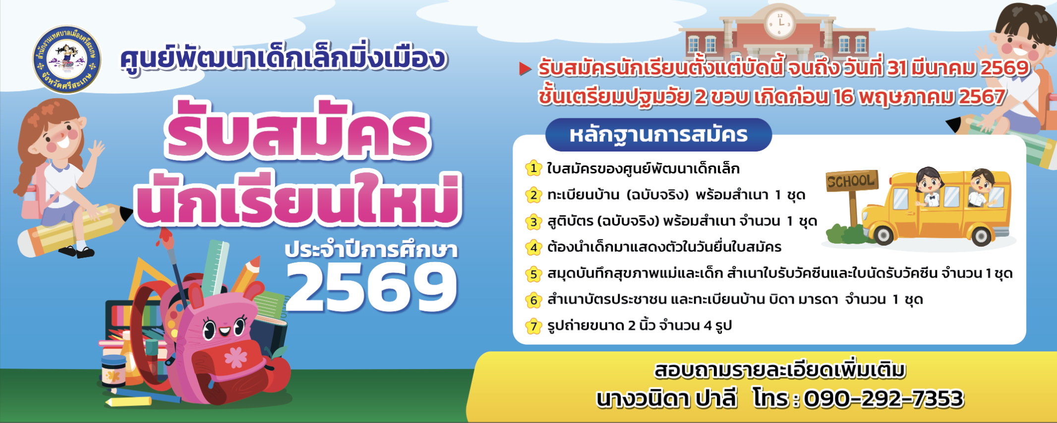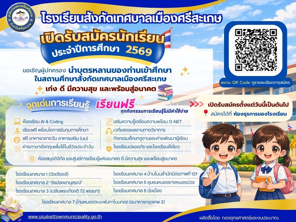เปิดรับสมัครนักเรียน ประจำปีการศึกษา 2569🖍 โรงเรียนสังกัดเทศบาลเมืองศรีสะเกษเปิดรับสมัครนักเรียน ประจำปีการศึกษา 2569เปิดรับสมัครตั้งแต่วันนี้เป็นต้นไปสมัครได้ที่ห้องธุรการของโรงเรียนดาวน์โหลดสื่อประชาสัมพันธ์ได้ที่ download โรงเรียนเทศบาล 1 โรงเรียนเทศบาล 2 โรงเรียนเทศบาล 3 โรงเรียนเทศบาล 4 โรงเรียนเทศบาล 5 โรงเรียนเทศบาล 6 โรงเรียนเทศบาล 7 ศูนย์พัฒนาเด็กเล็กบ้านโนนสำนัก ศูนย์พัฒนาเด็กเล็กมิ่งเมือง ศูนย์พัฒนาเด็กเล็กบ้านหนองตะมะ ศูนย์พัฒนาเด็กเล็กชุมชนหนองยางหนองม่วง Post Views: 381