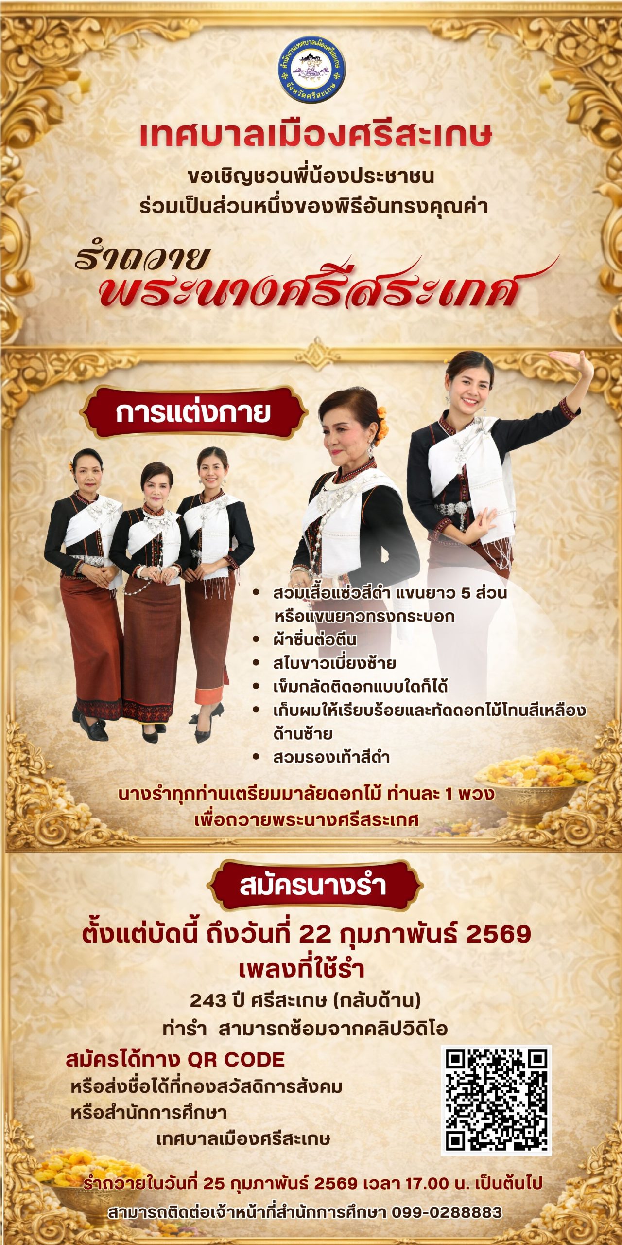 🙏✨ เทศบาลเมืองศรีสะเกษ ขอเชิญชวนพี่น้องประชาชน