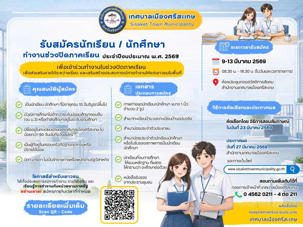 ทำงานในช่วงปิดภาคเรียน ประจำปีงบประมาณ พ.ศ.2569