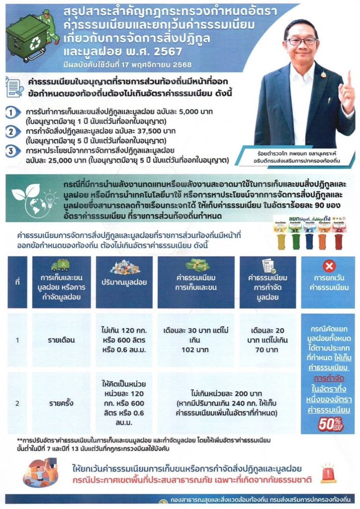 สรุปสาระสำคัญกฎกระทรวงกำหนดอัตราค่าธรรมเนียม และยกเว้นค่าธรรมเนี่ยมเกี่ยวกับการจัดการสิ่งปฏิกูลและมูลฝอย พ.ศ.2567 Post Views: 4