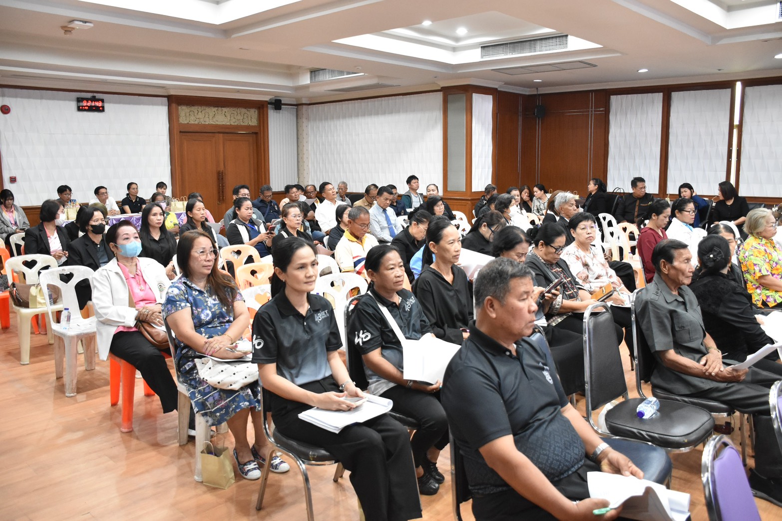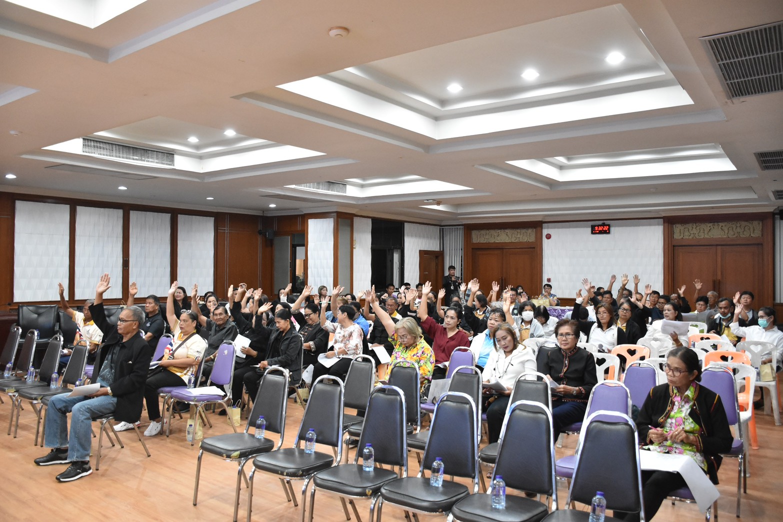 โดยมีสมาชิกสภาเทศบาล หัวหน้าส่วนการบริหารงานเทศบาล ผู้บริหารสถานศึกษา และผู้แทนชุมชนทั้ง 47 ชุมชนในเขตเทศบาลเมืองศรีสะเกษ ร่วมประชุมประชาคมในครั้งนี้